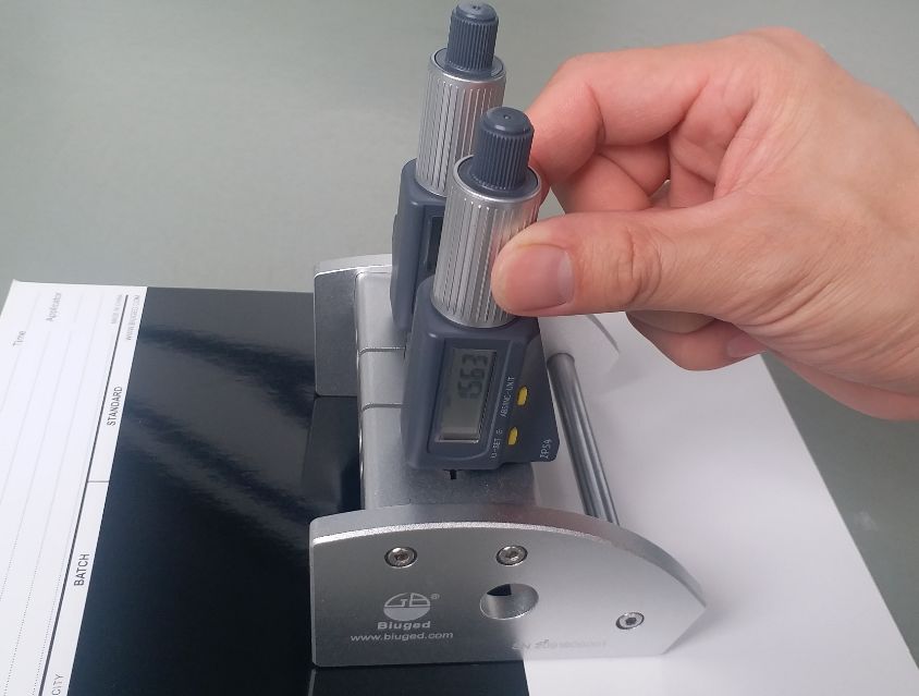 直接调节两个微分头上面螺母,直至屏幕显示所需厚度